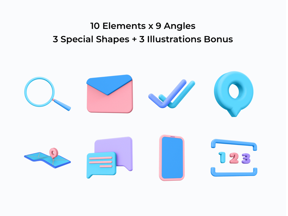 3 Special shapes. Easily combine with 3D elements to create illustrations.